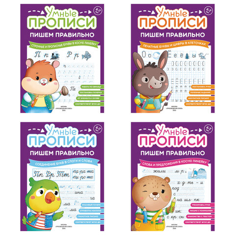 Прописи "Умные прописи ПИШЕМ ПРАВИЛЬНО", 6+, КОМПЛЕКТ 4шт, 64стр, 160x215, ПРОСВЕЩЕНИЕ,0417-01, 90-0417-01