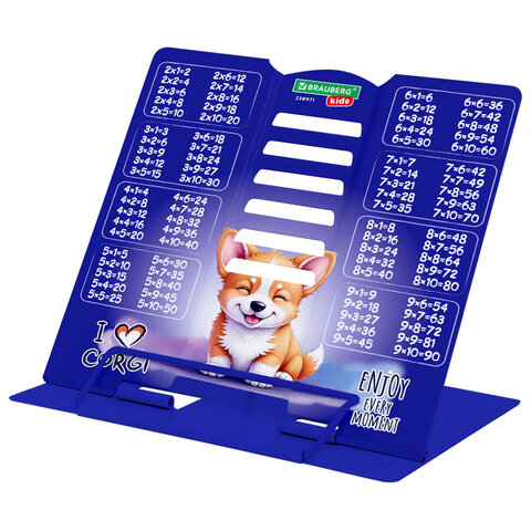 Подставка для книг и учебников BRAUBERG KIDS mini "Корги" с таблицей умножения, регулируемый угол наклона, металлическая, 238971