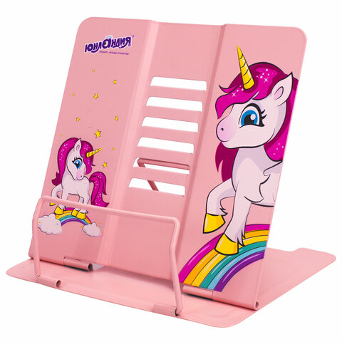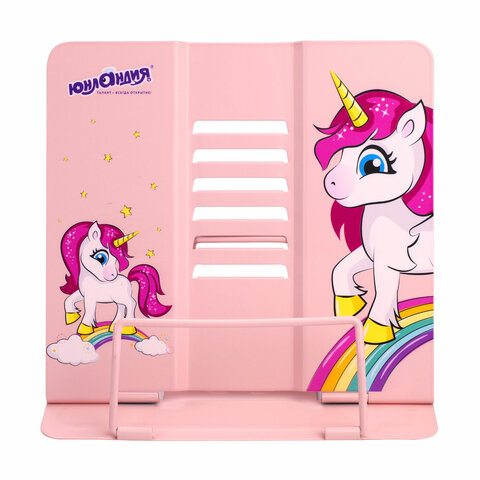 Подставка для книг и учебников большая ЮНЛАНДИЯ "Neon Unicorn", регулируемый наклон, металлическая, 237575