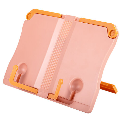 Подставка для книг и учебников ЮНЛАНДИЯ, регулируемый наклон, ABS-пластик, розовая, 237906