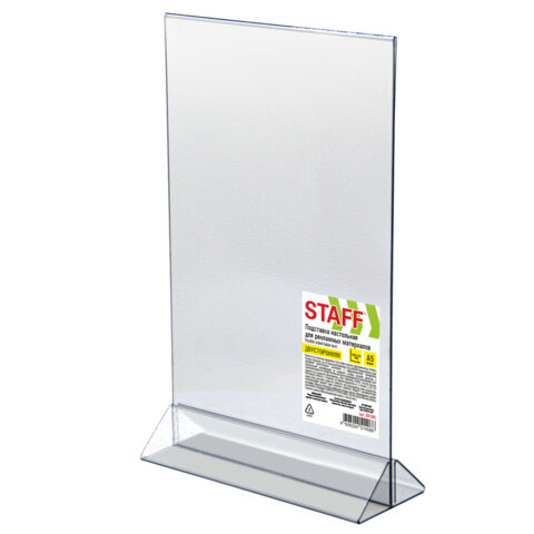 Двусторонняя вертикальная настольная подставка STAFF подходит для размещения меню, рекламных материалов формата А5.
