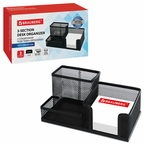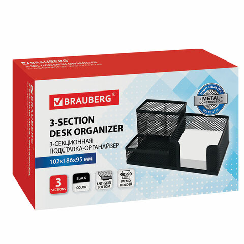 Подставка-органайзер BRAUBERG "Germanium", металлическая, 3 секции, 102х186х95 мм, черная, 231986