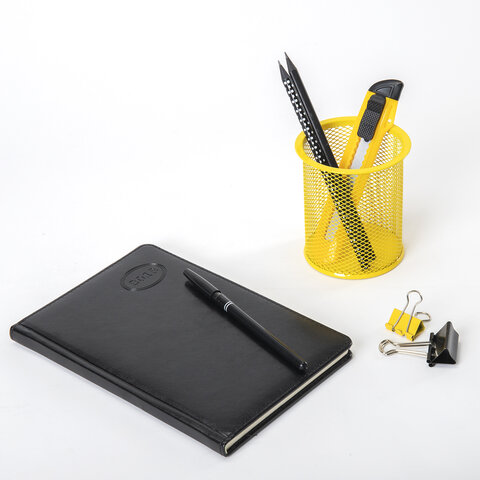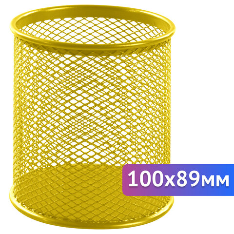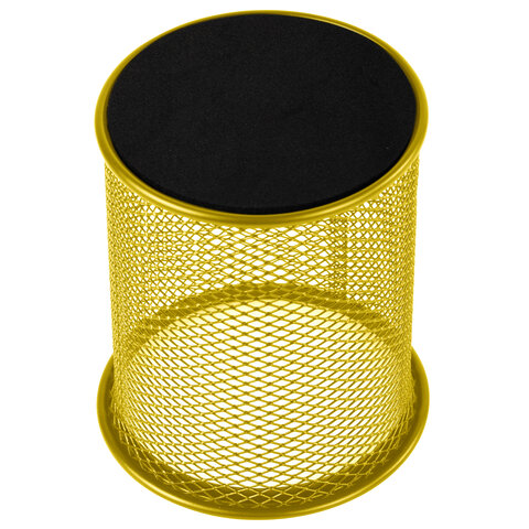 Подставка-органайзер BRAUBERG "Germanium", металлическая, круглое основание,100х89 мм, желтая, 231980