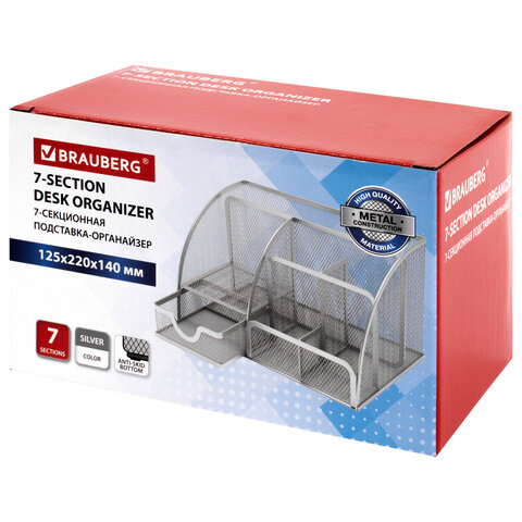 Подставка-органайзер металлическая BRAUBERG "Germanium", 7 секций, 125х220х140 мм, серебро, 237417