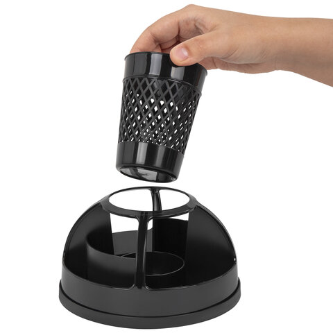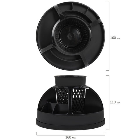 Подставка-органайзер STAFF "Attraction", 9 отделений, вращающаяся, черная, 238319