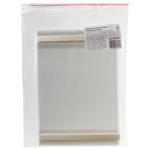 Карманы информационные самоклеящиеся PS-T, А4 вертикальные, КОМПЛЕКТ 10 шт., ПЭТ, толщина 0,3 мм, 172552