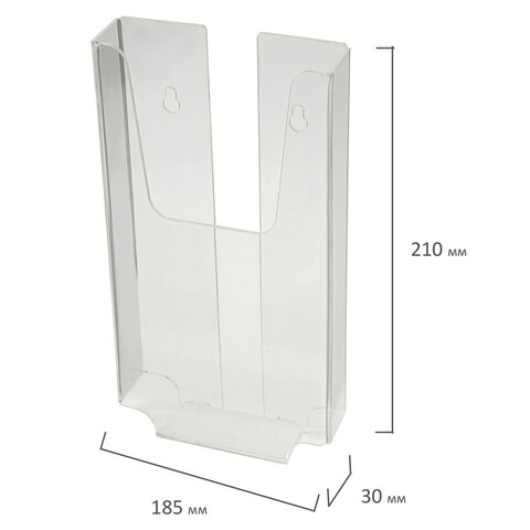 Подставка настенная для рекламных материалов МАЛОГО ФОРМАТА (105х210х30 мм), оргстекло, BRAUBERG, 290434