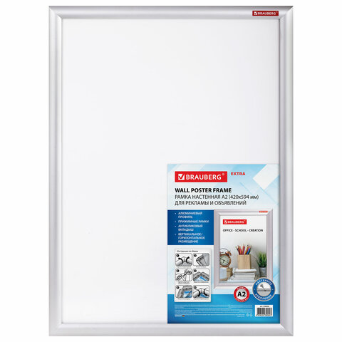 Рамка настенная с защелкивающимся профилем BRAUBERG "Extra" предназначена для размещения печатных материалов. Идеально подходит для использования в офисе, торговых залах, пунктах выдачи, медицинских и других учреждениях.
