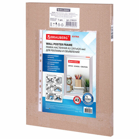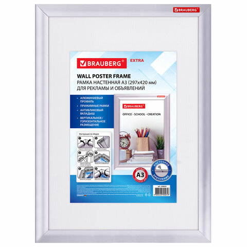 Рамка настенная с защелкивающимся профилем BRAUBERG "Extra" предназначена для размещения печатных материалов. Идеально подходит для использования в офисе, торговых залах, пунктах выдачи, медицинских и других учреждениях.