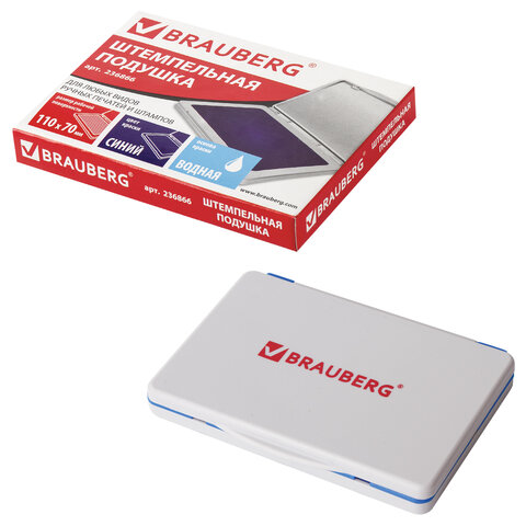 Штемпельная подушка BRAUBERG, 120х90 мм (рабочая поверхность 105х65 мм), синяя краска, 236866