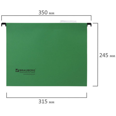 Подвесные папки А4 (350х245 мм), до 80 листов, КОМПЛЕКТ 10 шт., зеленые, картон, BRAUBERG (Италия), 231791