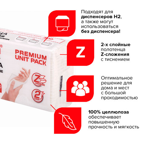 Полотенца бумажные (1 пачка 200 листов) LAIMA (Система H2) PREMIUM UNIT PACK, 2-слойные, 24х21,6 см, Z-сложение, 112139
