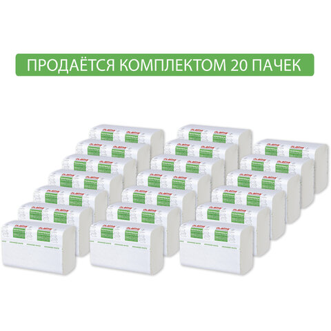 Полотенца бумажные 200 шт., LAIMA (H2) ADVANCED WHITE, 2-слойные, белые, КОМПЛЕКТ 20 пачек, 24х21,5, Z-сложение, 111338