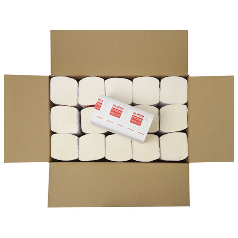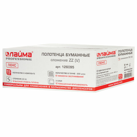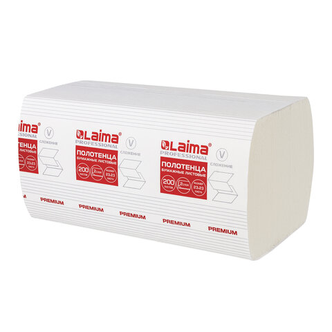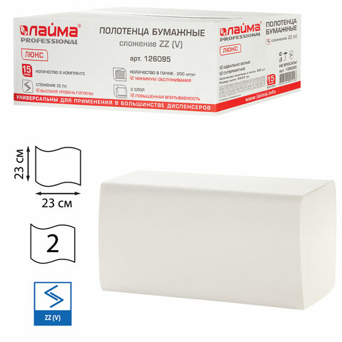 Полотенца бумажные 200 штук, LAIMA (H3) PREMIUM, 2-слойные, белые, КОМПЛЕКТ 15 пачек, 23х23, V-сложение, 126095