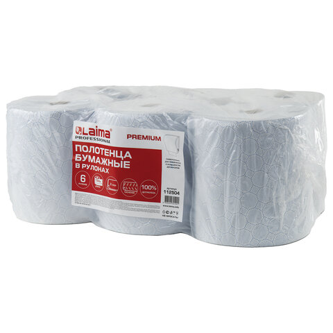 Полотенца бумажные рулонные 150 м, LAIMA (Система H1) PREMIUM, 2-слойные, белые с ЦВЕТНЫМ ТИСНЕНИЕМ, КОМПЛЕКТ 6 рулонов, 112504