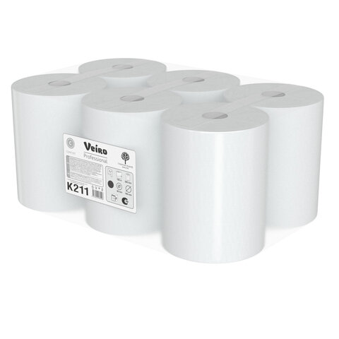 Полотенца бумажные рулонные 150 м, VEIRO Professional (H1) COMFORT, 1-слойные, КОМПЛЕКТ 6 рулонов, K211