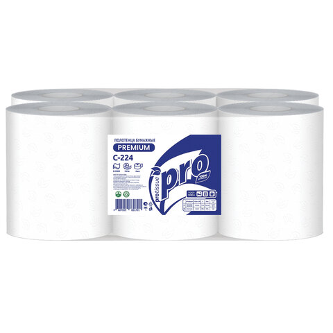Полотенца бумажные с центральной вытяжкой 150 м, PROtissue (M1) PREMIUM, 2-слойные, белые, КОМПЛЕКТ 6 рулонов, С224