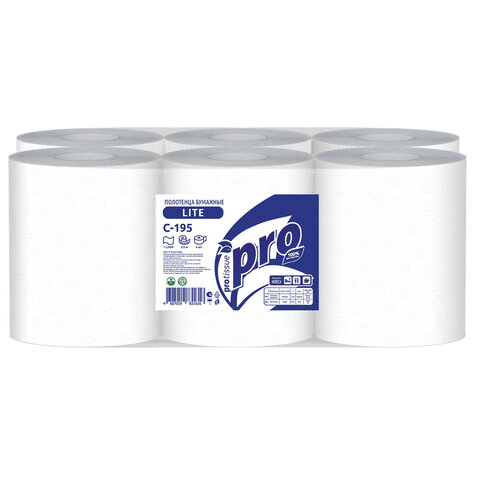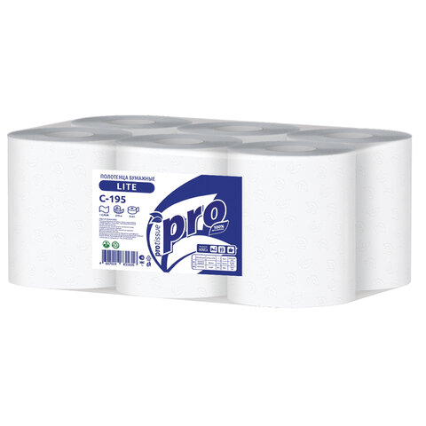 Полотенца бумажные с центральной вытяжкой 275 м, PROtissue (M2) LITE, 1-слойные, белые, КОМПЛЕКТ 6 рулонов, С195
