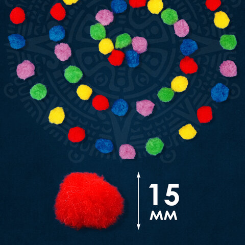 Помпоны для творчества, 5 цветов, 15 мм, 50 шт., ОСТРОВ СОКРОВИЩ, 661426