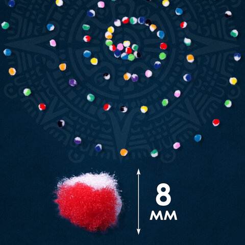 Помпоны для творчества, многоцветные, 8 мм, 100 шт., ОСТРОВ СОКРОВИЩ, 661428