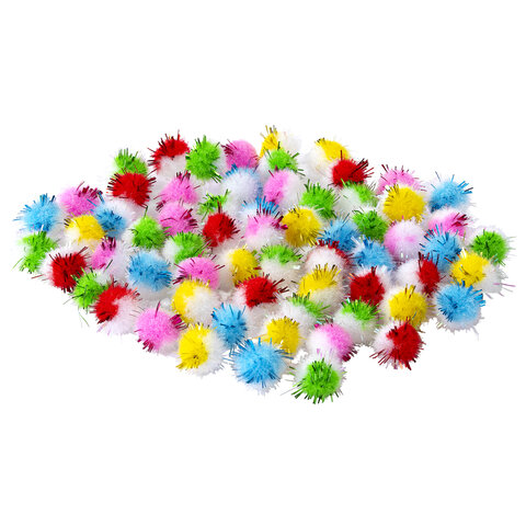 Помпоны для творчества, многоцветные, блестящие, 10 мм, 60 шт., ОСТРОВ СОКРОВИЩ, 661433