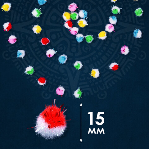 Помпоны для творчества, многоцветныее, блестящие, 6 цветов, 15 мм, 50 шт., ОСТРОВ СОКРОВИЩ, 661434