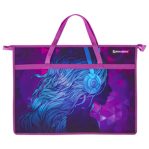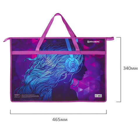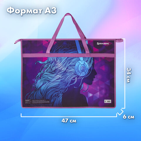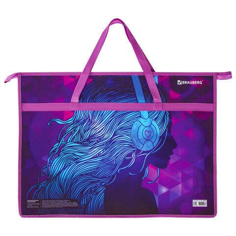Папка для рисунков и чертежей с ручками BRAUBERG А3, пластик, молния сверху, "Melody", 228201