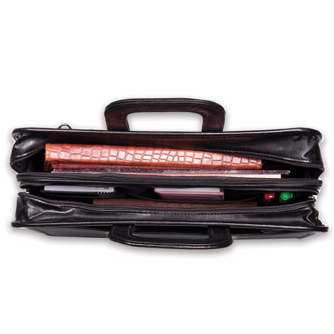 Портфель "Карьера", 36х31х7 см, искусственная кожа, 2 отделения, на молнии, черный, 162