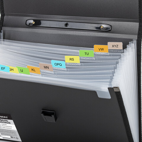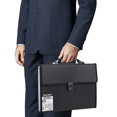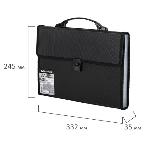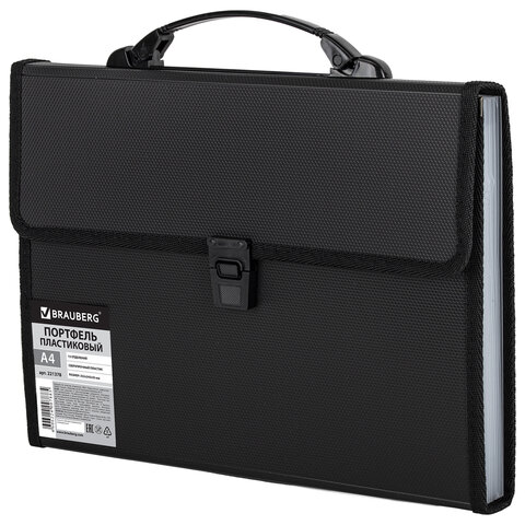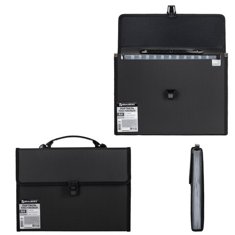 Папка-портфель пластиковая BRAUBERG А4 (332х245х35 мм), 13 отделений, черная, 221378