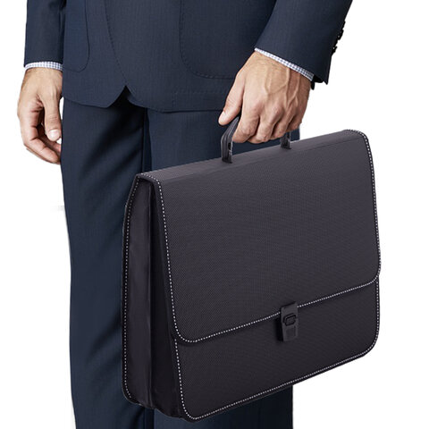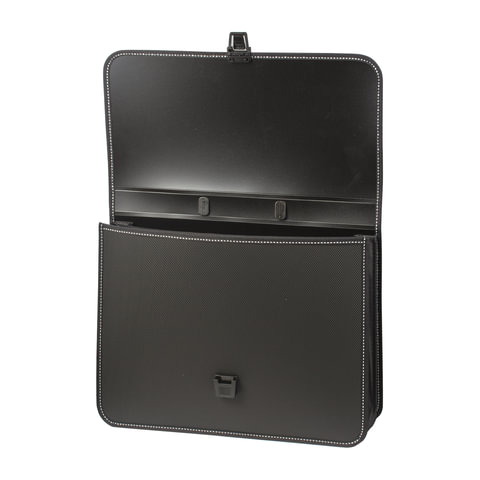 Папка-портфель пластиковая BRAUBERG "КОНСУЛ" А4 (370х280х120 мм), 2 отделения, фактура "бисер", черная, 223079