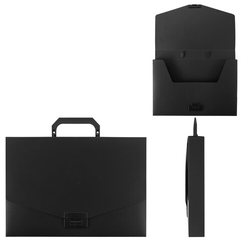 Портфель пластиковый STAFF А4 (320х225х36 мм), без отделений, черный, 229241