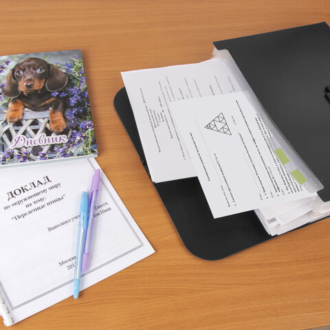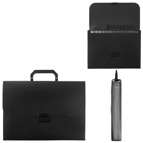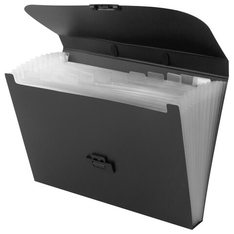 Портфель пластиковый STAFF А4 (330х235х36 мм), 13 отделений, индексные ярлыки, черный, 229245