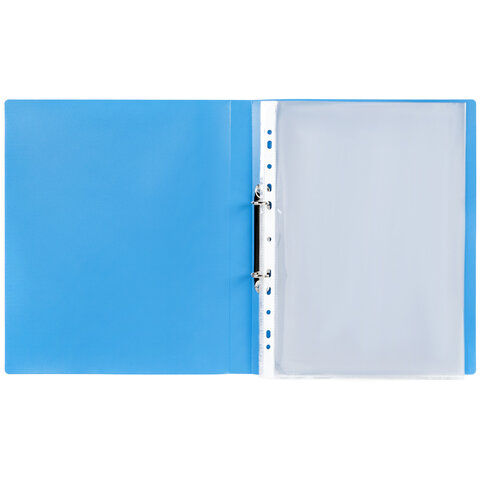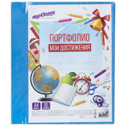 Папка для портфолио школьника/дошкольника, А4, 2 кольца, 10 файлов, пластик синий, ЮНЛАНДИЯ, 115236