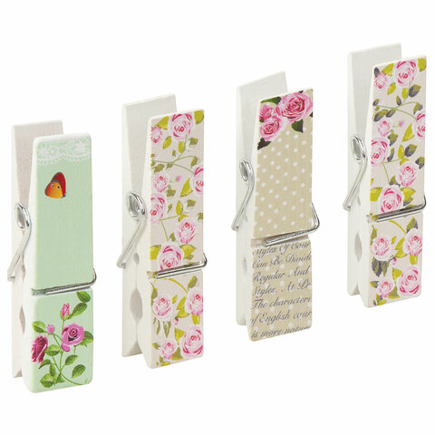 Прищепки декоративные широкие "Шебби-шик", 4 штуки, 7,2 см, ассорти, ОСТРОВ СОКРОВИЩ, 662679
