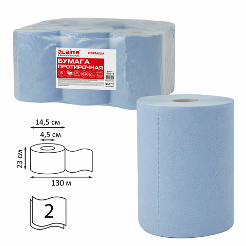 Бумага протирочная 130 м, LAIMA (Система W1) PREMIUM, 2-слойные, 500 листов в рулоне размером 23х26 см, КОМПЛЕКТ 6 рулонов, 112513