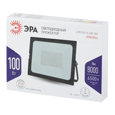 Прожектор светодиодный ЭРА, 100 (830) Вт, 6500 К, 8000 Лм, IP65, черный, LPR-023-0-65K-100, Б0052026