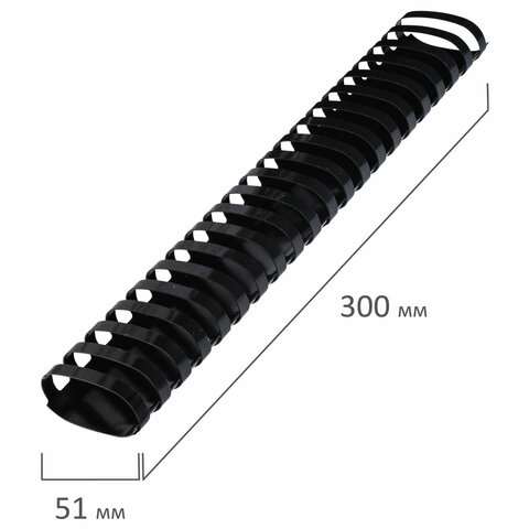Пружины пластиковые для переплета, КОМПЛЕКТ 50 шт., 51 мм (для сшивания 411-450 л.), черные, BRAUBERG, 530934