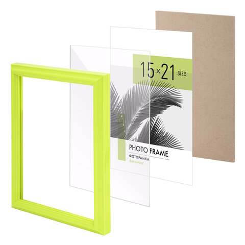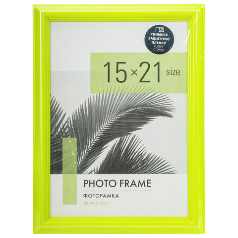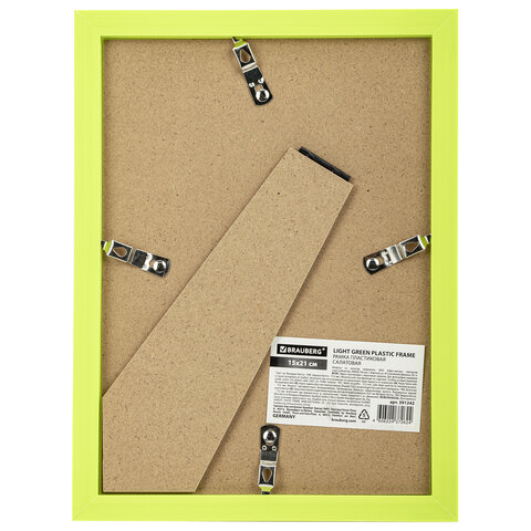 Рамка 15х21 см небьющаяся, багет 17,5 мм, пластик, BRAUBERG "Colorful", салатовая, 391243