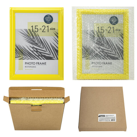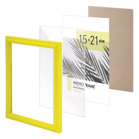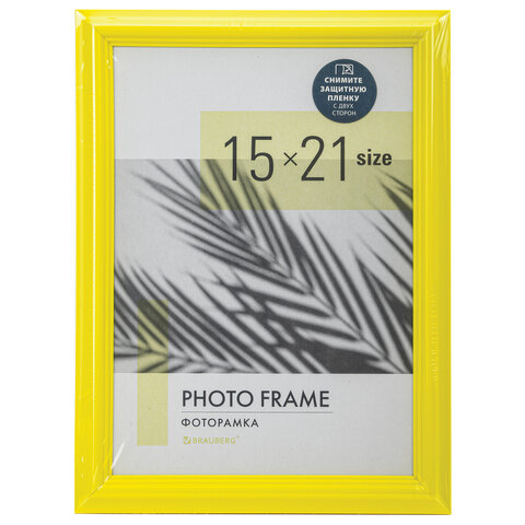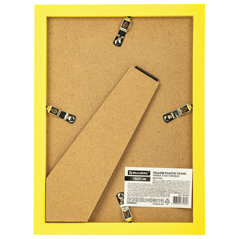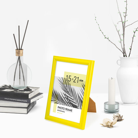 Рамка 15х21 см небьющаяся, багет 17,5 мм, пластик, BRAUBERG "Colorful", желтая, 391245