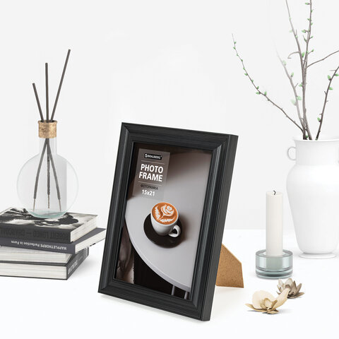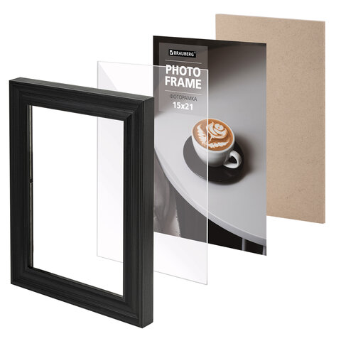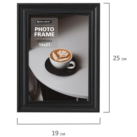 Рамка 15х21 см небьющаяся, багет 27 мм, пластик, BRAUBERG "Viscount", черная, 391256