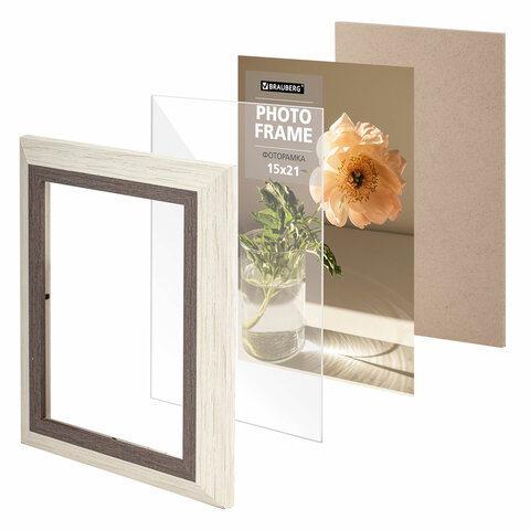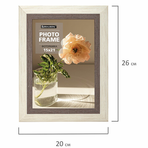 Рамка 15х21 см небьющаяся, багет 30 мм, пластик, BRAUBERG "Lambert", слоновая кость/капучино, 391250