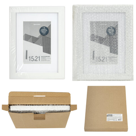 Рамка 15х21 см с паспарту 10х15 см небьющаяся, багет 20 мм пластик, BRAUBERG "New Age", белая, 391274