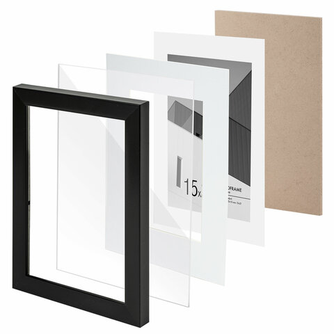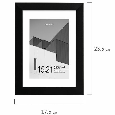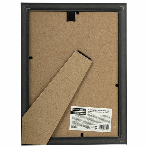 Рамка 15х21 см с паспарту 10х15 см небьющаяся, багет 20 мм, пластик, BRAUBERG "New Age", черная, 391273