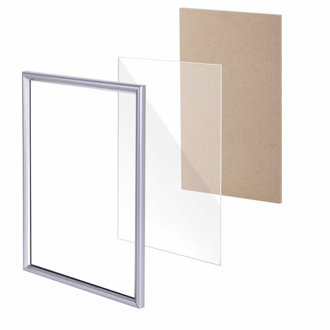 Рамка 21х30 см со стеклом, багет 14 мм пластик, BRAUBERG "HIT2", матовое серебро, 391318