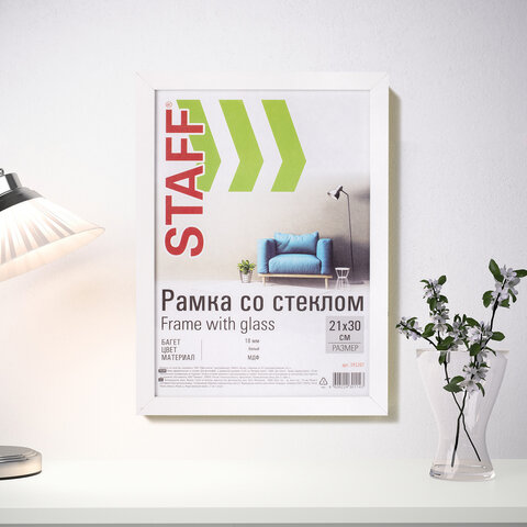 Рамка 21х30 см белая STAFF "Grand", багет 18 мм, стекло, МДФ, 391207