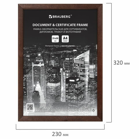 Рамка 21х30 см, дерево, багет 14 мм, BRAUBERG "Elegant", венге, акриловый экран, 391295