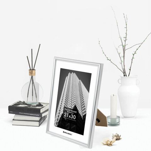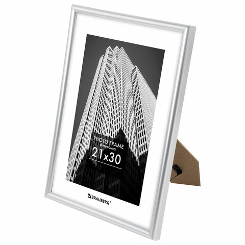 Рамка 21х30 см небьющаяся, багет 12 мм, пластик, BRAUBERG "Original", серебристая, 391231