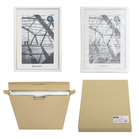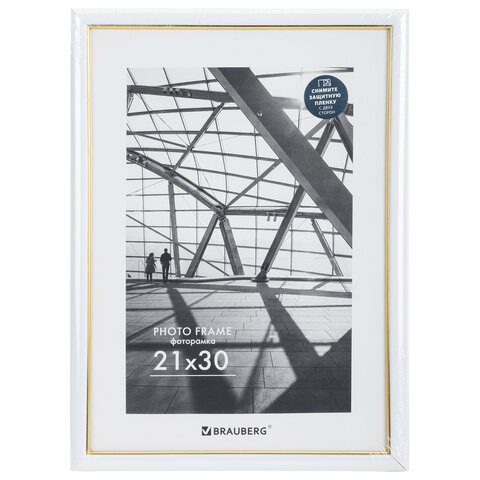 Рамка 21х30 см небьющаяся, багет 14,6 мм, пластик, BRAUBERG "Original Line", белая/золото, 391236