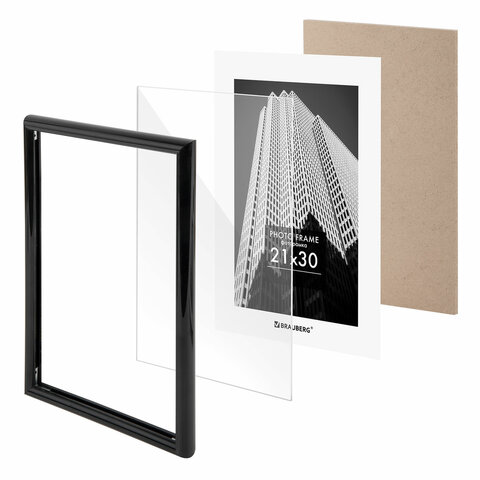 Рамка 21х30 см небьющаяся, багет 14 мм, пластик, BRAUBERG "Original", черная, 391229