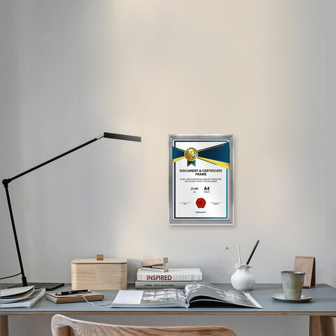 Рамка BRAUBERG "Respect" для фотографий, дипломов, сертификатов, грамот и других ценных документов гармонично будет смотреться как в офисном, так и в домашнем интерьере, а также в салонах и предприятиях, в магазинах и различных учреждениях.